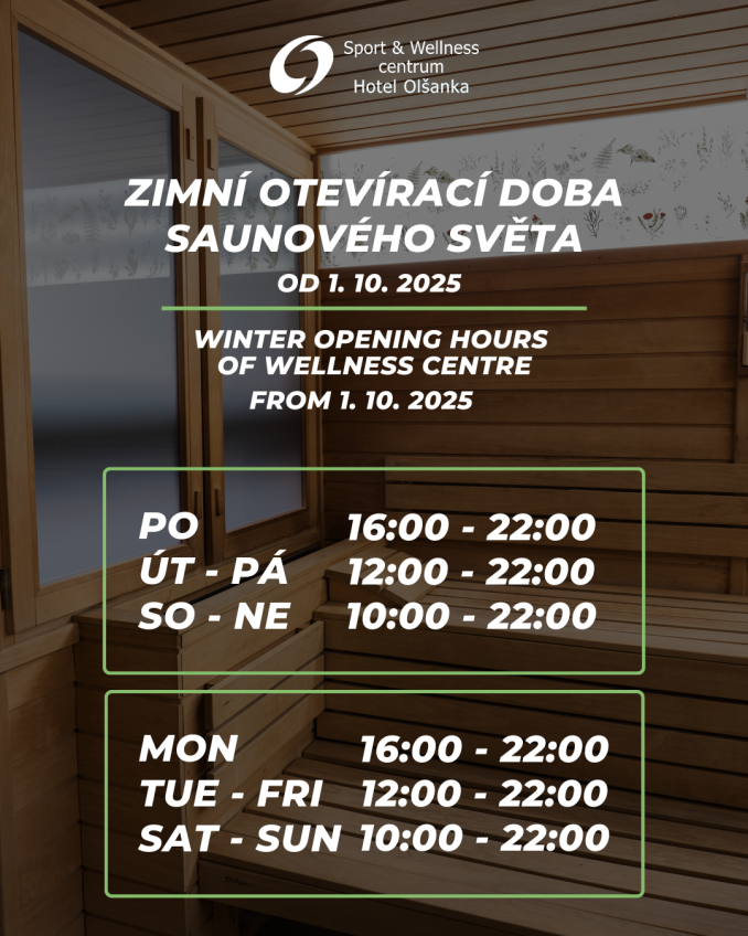 Zimní otevírací doba platná od 1. 10. 2025: